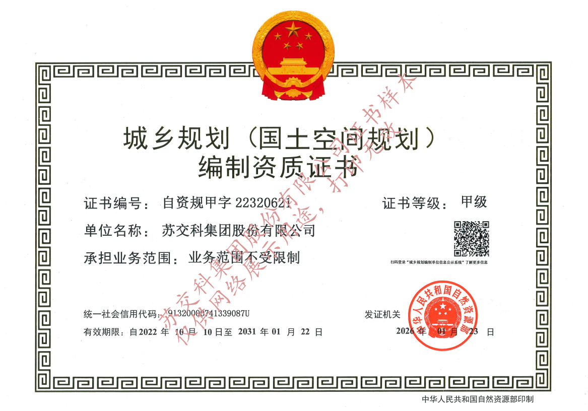 蘇交科擁有工程行業(yè)各領域甲級資質,包括城鄉(xiāng)規(guī)劃甲級資質;工程咨詢綜合甲級資質;工程咨詢專業(yè)甲級資質(公路、生態(tài)建設和環(huán)境工程、水文地質、工程測量、巖土工程、城市規(guī)劃、鐵路、城市軌道交通、港口河海工程、市政公用工程(市政交通、給排水)、水利工程、旅游工程);工程設計綜合甲級資質;工程勘察綜合類甲級資質;測繪甲級資質;公路工程和市政公用工程總承包一級資質;公路工程、水運工程、市政公用工程監(jiān)理甲級資質;公路工程甲級、公路工程交通工程專項、水運工程材料甲級和水運工程結構甲級試驗檢測資質。