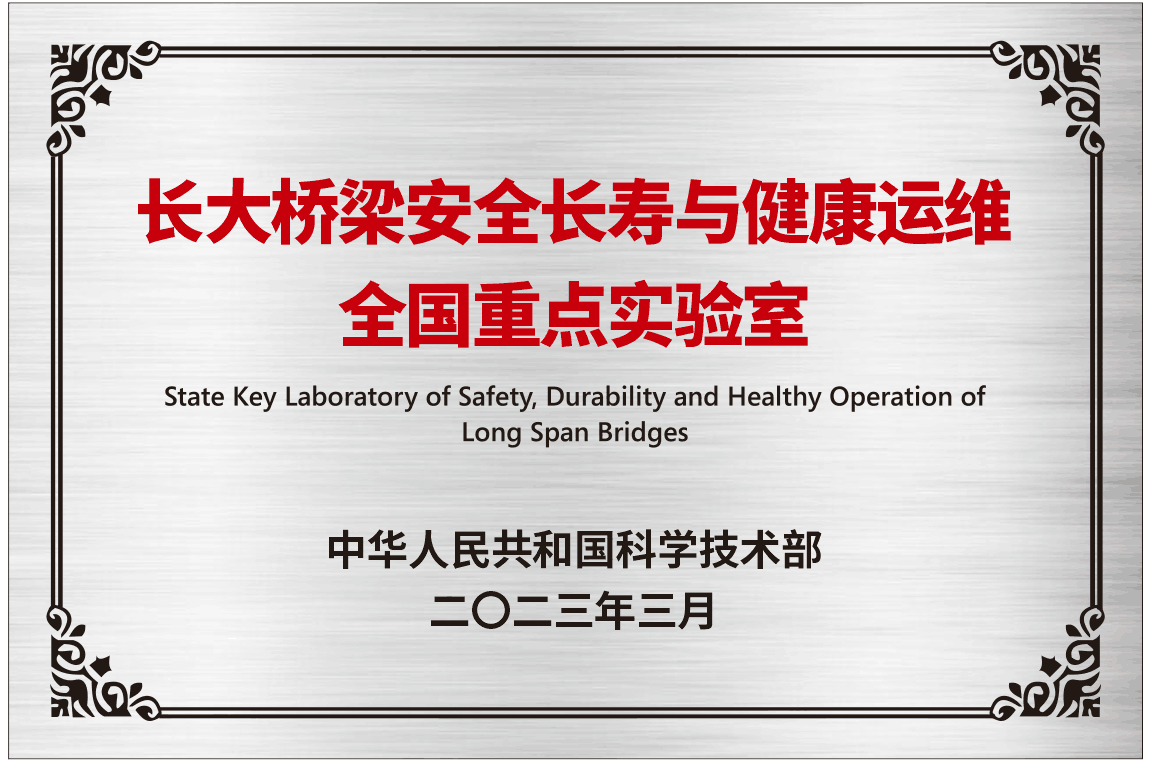 長(zhǎng)大橋梁安全長(zhǎng)壽與健康運(yùn)維全國(guó)重點(diǎn)實(shí)驗(yàn)室(國(guó)家科技部,2023)